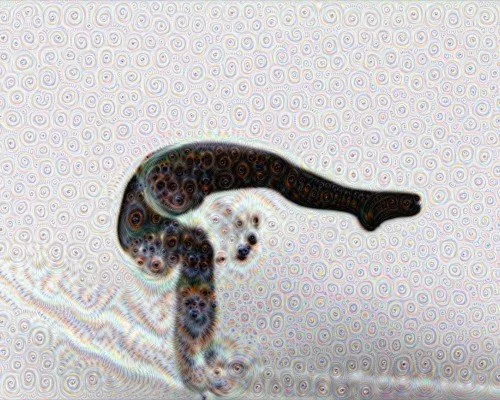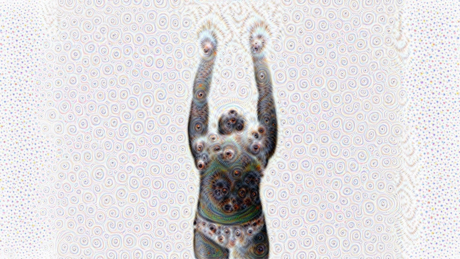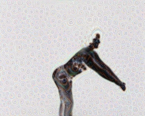 CIPHER’s movements are based on a 1934 film from the Wellcome Collection moving image library [1] showing female acrobats performing various contortions for the male medical gaze. As opposed to the sequined bikini of the acrobats, the surface of CIPHER’s body is a morphing pattern, generated by using a variation of Deep Dream [2] software.